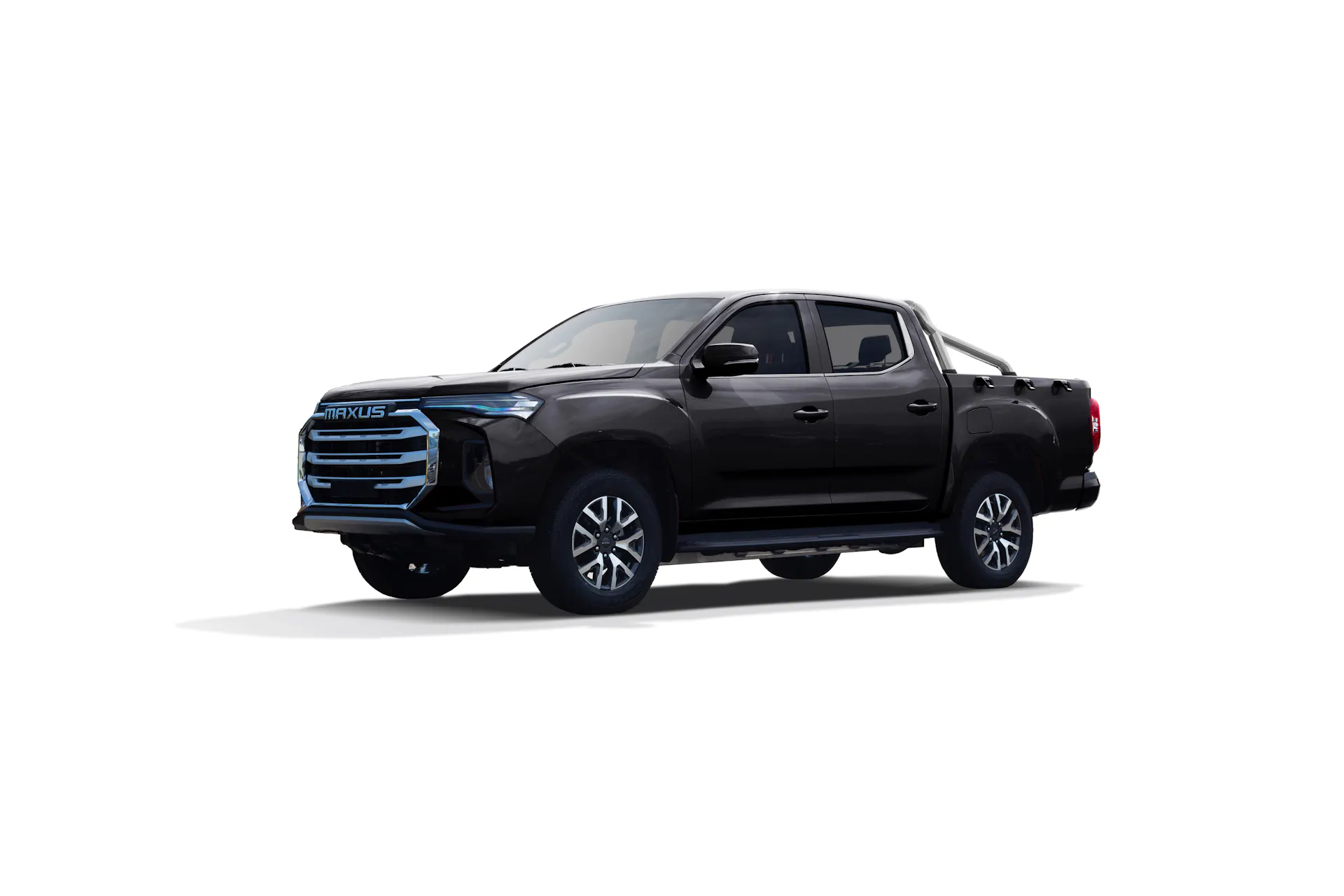 Le Maxus T90 EV allie un design séduisant à des éléments classiques. Une calandre élevée confère à la voiture une apparence agressive, captant immédiatement l'intérêt. Son caractère robuste est confirmé par les passages de roue dynamiques et les feux arrière prononcés.